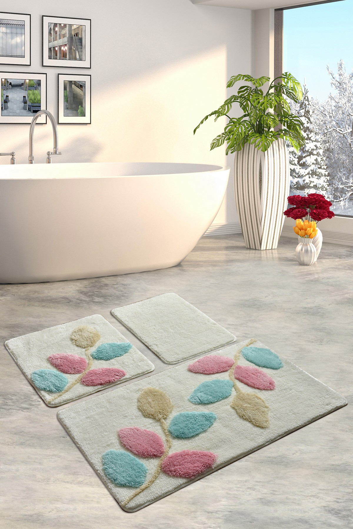 Bathmat Set (3 Pieces) 100% ACRYLIC Pile Height: 18-30 mm Antibacterial Non-Slip Underside Washable by Machine at 30 C Bathmat: 40 x 60 cm (1 Piece) Bathmat: 50 x 60 cm (1 Piece) Bathmat: 60 x 100 cm (1 Piece) 1450 gr/m