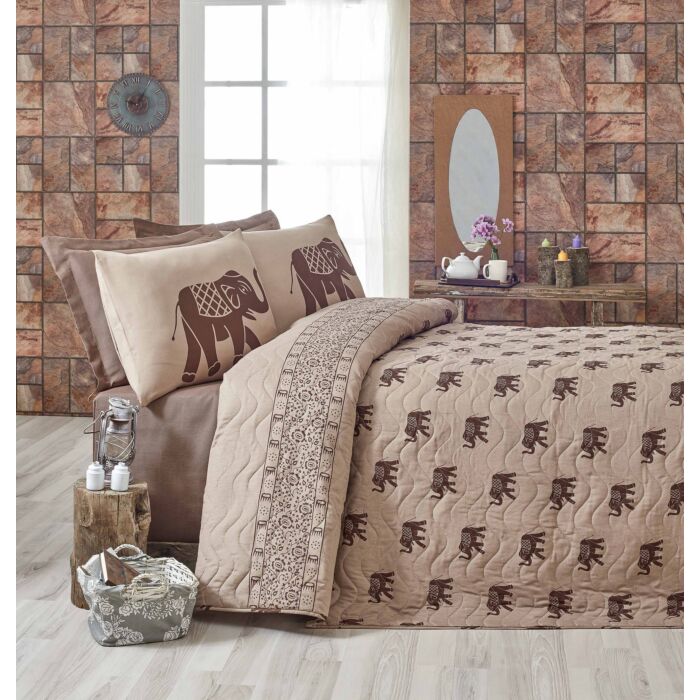 Asir Dubbele gewatteerde set voor sprei - Bruin Lichtbruin