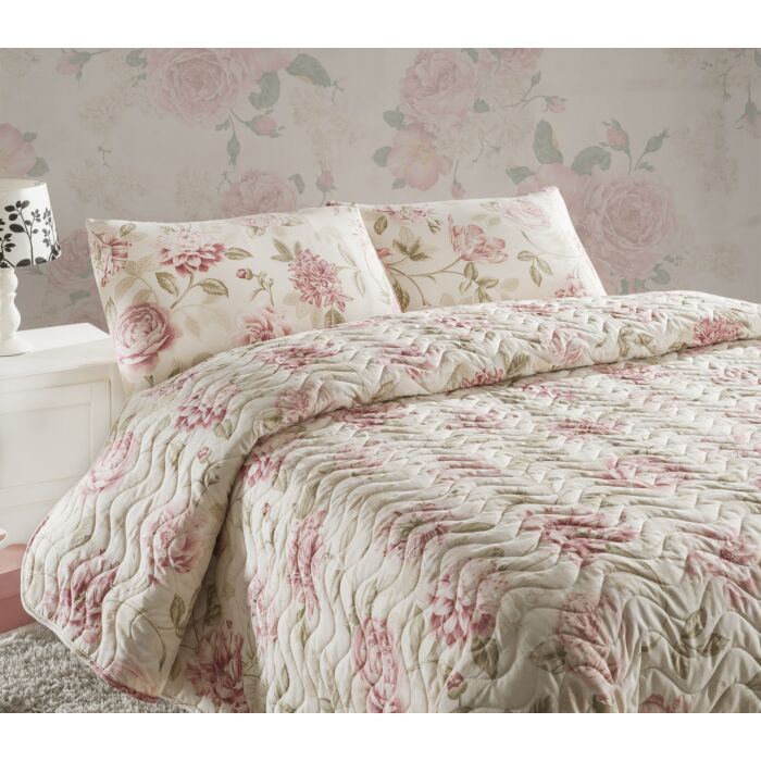 Asir Dubbele gewatteerde set voor sprei - Roze Ecru