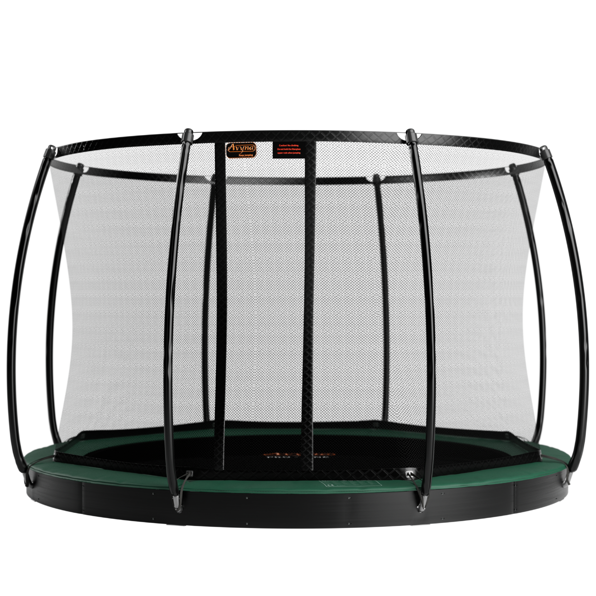 FlatLevel Trampolin-Set 14 mit SicherheitsnetzDer Rahmen dieses großen Trampolins geht 22 cm in den Boden und ist somit ebenerdig. Die Konstruktion mit Hart-PVC-Schutzplatte ist leicht zu vergraben und sorgt dafür, dass kein Sand zusammenbrechen kann. Auch dieses Kombitrampolin ist mit modernsten Bauschutznetzen ausgestattet, die durch die geschwungene Konstruktion nicht nur Sicherheit garantieren, sondern auch optisch ein Genuss sind! Wie bei allen Avyna Pro-Line Trampolinrahmen wird auch dieses mit einer lebenslangen Garantie geliefert. Und auf die doppelt verzinkten Federn, die komplett von der stabilen Trampolinkante bedeckt sind, gibt es 10 Jahre Garantie. Unser spezielles AirStream Sprungtuch sorgt dafür, dass die Luft unter dem Trampolin das Trampolin über das Sprungtuch verlässt. Und das wiederum sorgt für optimale Sprungqualität! Jemanden eingraben lassen Möchten Sie, dass jemand anderes im Trampolin gräbt? Wir arbeiten mit verschiedenen Gärtnern zusammen und einige unserer Händler graben auch ein. Schauen Sie hier kurz nach, wenn Sie helfen könnten.
