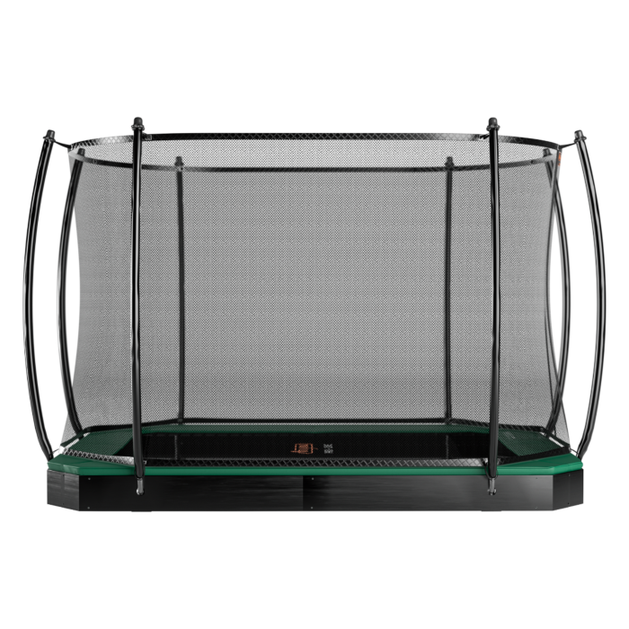 Flatlevel Trampolin-Set 234 mit SicherheitsnetzDas rechteckige Pro-Line FlatLevel Kombi-Set 234 ist 340 x 240 cm groß und verfügt über eine Hart-PVC-Schutzplatte, die dafür sorgt, dass dieses Trampolin komplett ebenerdig eingegraben werden kann neueste Bauschutznetze, die durch ihre geschwungene Konstruktion nicht nur Sicherheit garantieren, sondern auch optisch ein Genuss sind!Wenn Sie sich für ein Kombi-Set entscheiden, machen Sie das Springen noch sicherer. Unsere FlatLevels haben sowohl einen oberen als auch einen unteren Rahmen, die mit einer Gesamttiefe von 22 cm in den Boden eingelassen werden. Die Trampolinmatte dieser Trampoline verfügt über eine spezielle AirStream-Matte, die dafür sorgt, dass die Luft unter dem Trampolin das Trampolin über das Sprungtuch verlässt. Dadurch ist die Sprungqualität des Avyna Trampolins optimal, wie Sie es von der Avyna Pro-Line gewohnt sind!Die Kanten dieser Trampoline sind auf besondere aber einfache Weise befestigt, damit die Kante beim Springen fest auf dem Trampolin bleibt eine lebenslange Garantie auf den Rahmen und nicht weniger als 10 Jahre auf die doppelt verzinkten Federn. Wenn jemand anderes eingraben möchte oder keine Lust hat selbst im Tampo zu graben, arbeiten wir mit verschiedenen Händlern und Gärtnern zusammen, die diesen Service anbieten. Natürlich können Sie uns jederzeit kontaktieren.