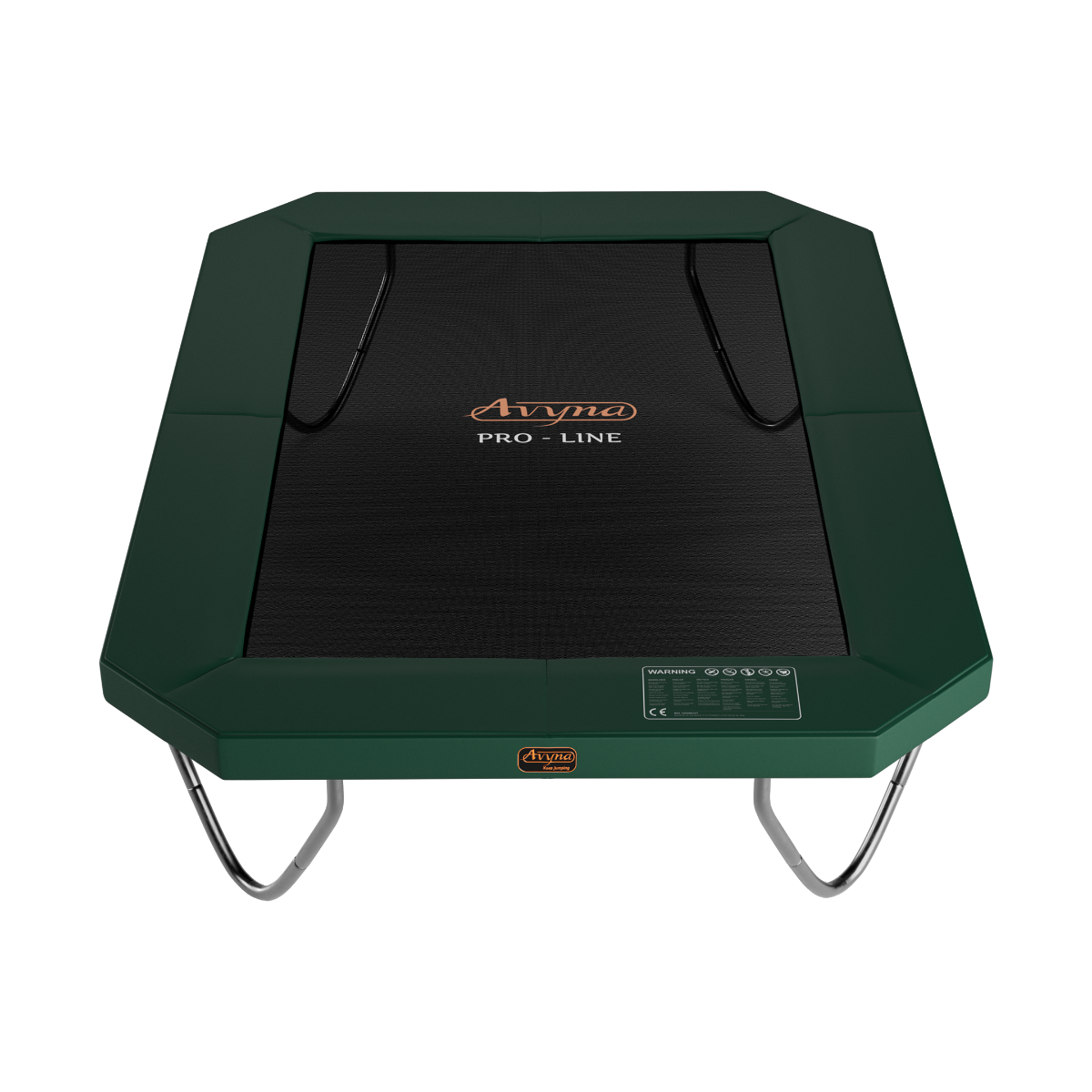Avyna Trampolin-Set 234 Dieses PRO-LINE Trampolin von Avyna hat die Maße 340 x 240 x 86 cm, erfüllt alle Sicherheitsanforderungen und wurde als das Beste getestet.Der stabile Trampolinrand deckt die doppelt verzinkten Federn und den Rahmen für zusätzliche Sicherheit vollständig ab und Überreste liegen bei jedem Sprung ordentlich auf dem Trampolin. Mit Avyna holst du dir Qualität nach Hause und hast eine lebenslange Garantie auf den Rahmen. Willst du noch mehr Sicherheit bei jedem Sprung? Dann sehen Sie sich ein Trampolin inklusive Sicherheitsnetz mit freier Leiter an.Wollen Sie lieber eingraben?Dann schauen Sie sich unsere rechteckigen InGround-Trampoline an, die 20 cm über dem Boden kommen, oder unsere FlatLevels, die bodenbündig sind.
