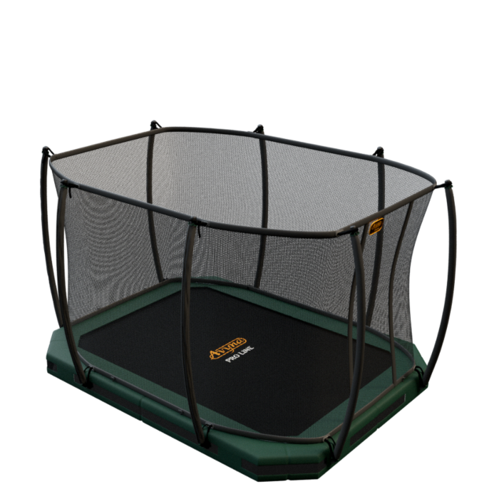 Loses Sicherheitsnetz mit gebogenen Pfosten Neben einem Sicherheitsnetz für das rechteckige Trampolin mit geraden Pfosten gibt es jetzt auch separate Netze mit gebogenen Rohren.Dieses schlanke Design eignet sich für Aufputz-, InGround- und FlatLevel-Trampoline. Auch bei dieser Ausführung kommt das Netz zur Sicherheit des Springers auf halbem Weg zum Schutzrand.