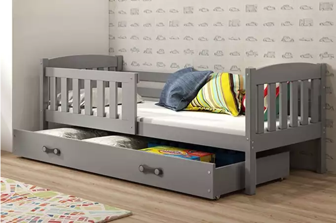 KUBUŚ Single Children's Bed 80X160 with Drawer, Graphite