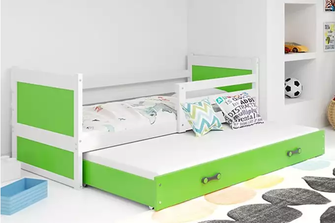 RICO 90X190 Pull-Out Youth Bed with Mattress and Drawer, White/Green