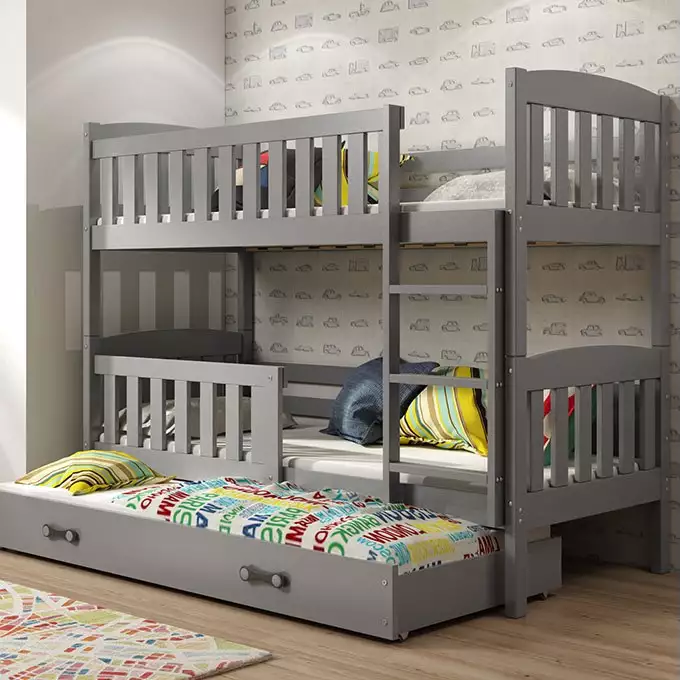 BMS KUBUŚ Triple Youth Bed 90X190 with Mattress and Drawer, Graphite