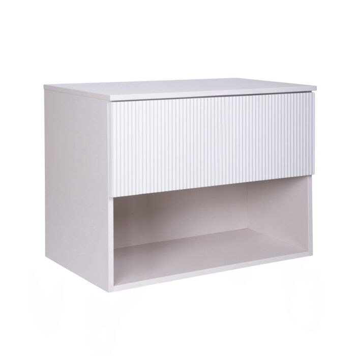 Der NAVADO Schrank hat einen einheitlichen Korpus mit einer vollen Schublade und einem offenen Regal. Er bietet reichlich Platz für Kosmetika, Bad-Accessoires, Föhne, Make-up-Utensilien oder Handtücher. Die einfache, leichte Form in Kombination mit der gefrästen Schubladenfront schafft einen fantastischen visuellen Effekt. Der Schrank passt zu vielen Badezimmerdesign-Stilen - modern, skandinavisch, glamourös und japanisch.