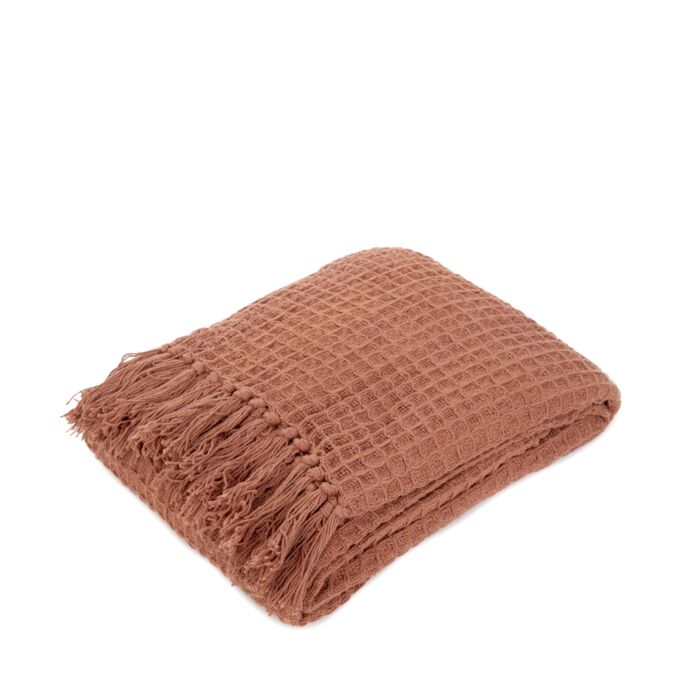 Homla Decke | WAFFEL | mit Fransen Ziegelrot | 130x170 cm | 856865
