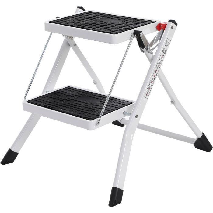 Hoppa! Songmics 2-treden ladder, vouwladder, traptrede breedte 20 cm, antislip rubber, met handvat, draagvermogen 150 kg, staal, GS-gecertificeerd, zwart en wit