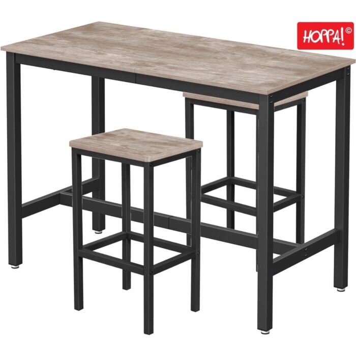 Hoppa! Songmics Bartafel- en 2 barkrukken | Greywash en zwart | Bartafel 120×60×90 cm, 2 barkrukken 30×40×65 cm (L×B×H)