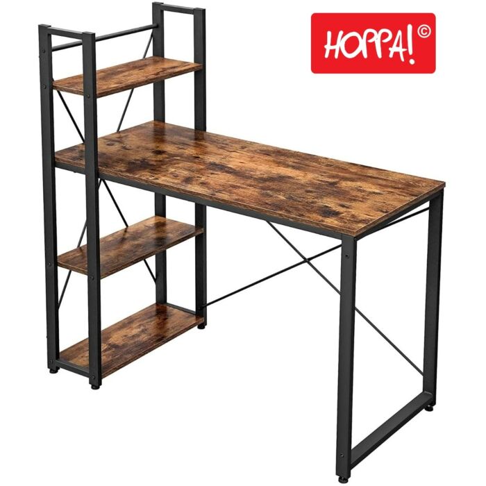 WAT JE KRIJGT: Een computerbureau van 120 cm met opbergplanken die links of rechts kunnen worden gemonteerd, een montageset en gedetailleerde instructies - allemaal uit onze ALINRU-collectie in industriële stijl