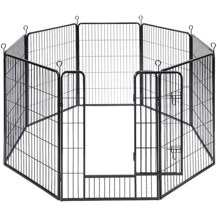 Yay! Songmics Hundegitter - Puppypen - 160x160 cm - 8 Teile à 80 x 80 cm - Grau - Metall - Quadrat, Rechteck oder Achteck nach Wahl