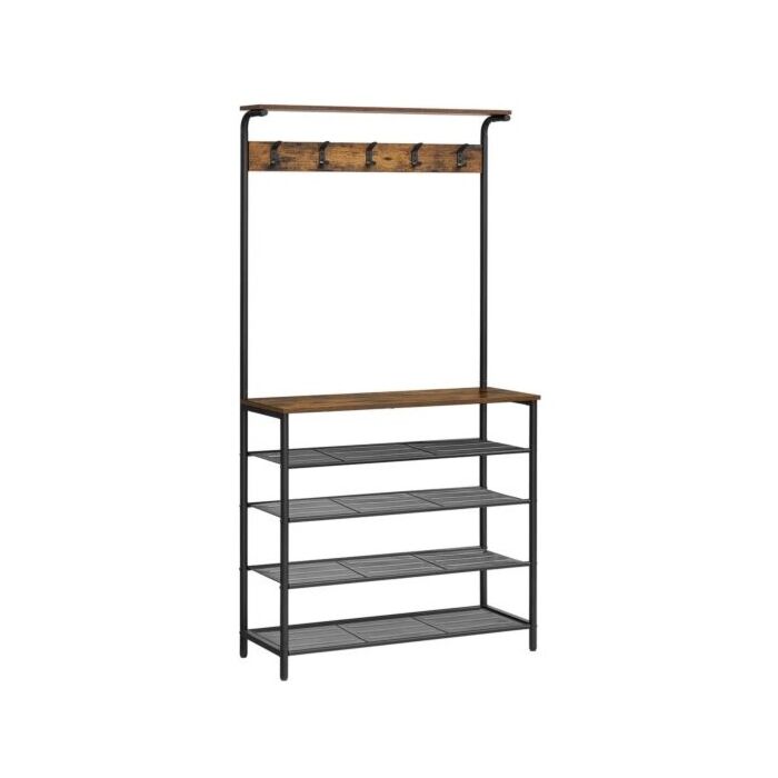 Hoppa! Songmics kapstok, kledingrek, kapstok met 5 dubbele haken, schoenenrek met 5 niveaus, vintage bruin-zwart 80 x 31,5 x 174 cm (BxDxH)
