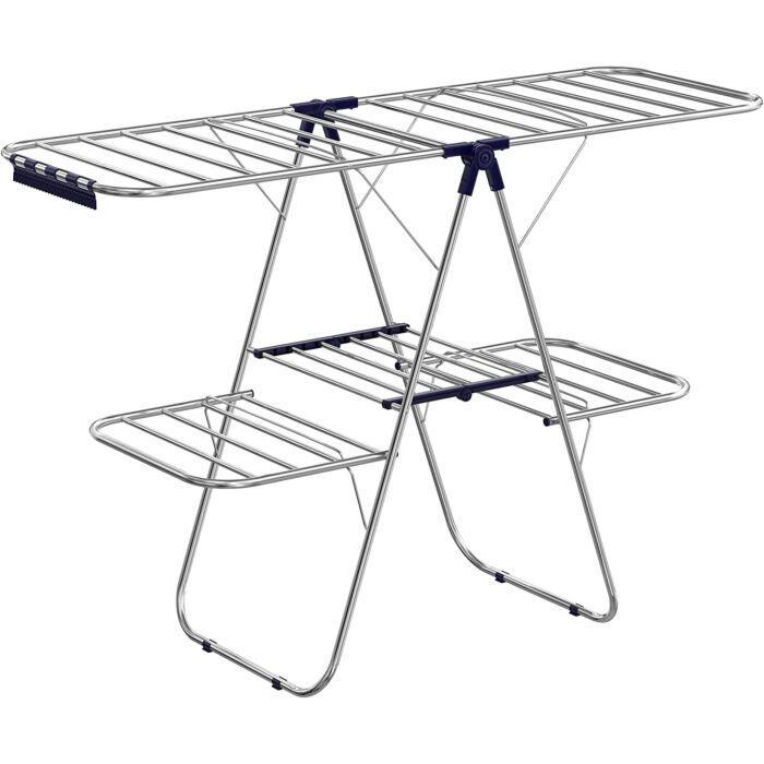 Yay! Songmics Edelstahl-Wäscheständer, Wäschetrockner mit höhenverstellbaren Flügeln, Flügel-Wäscheständer mit 2 Ebenen, für Socken, Bettwäsche, Kleidung, faltbar, Balkon, stabil, blau