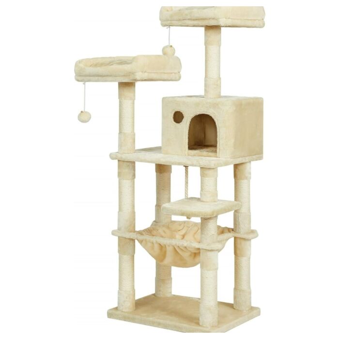 Sie bewerten: Hoppa! Songmics Krabpaal, stabiele kattentoren, 2 zitstokken van pluche, 143 cm, lichtgrijs
