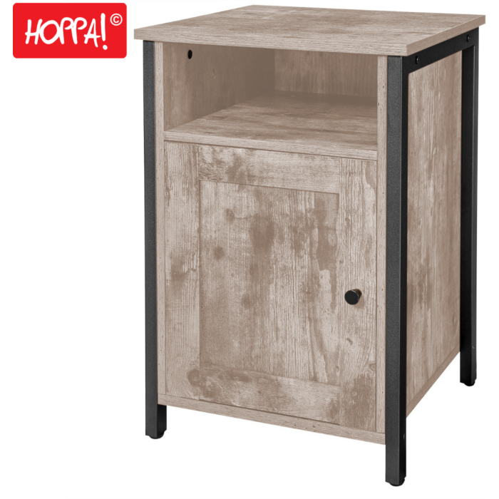 Sie bewerten: Yay! Songmics Nachttisch – Offenes Fach – Regal und Tür – Braun – Holzspanplatte/Stahl