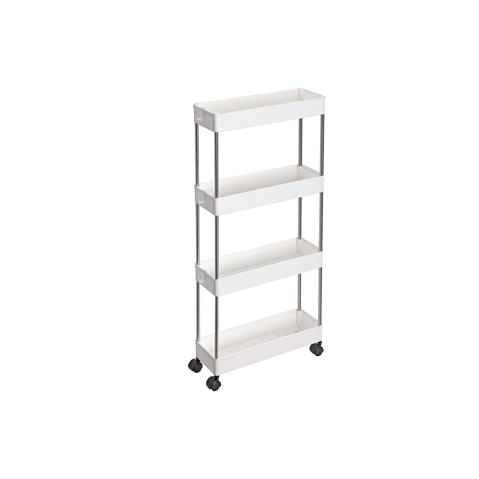 Wagen met 4 etages, keukenwagen, nis-plank op wielen, ruimtebesparend badkamer- en keukenplankje, 40 x 13 x 86 cm (wit)