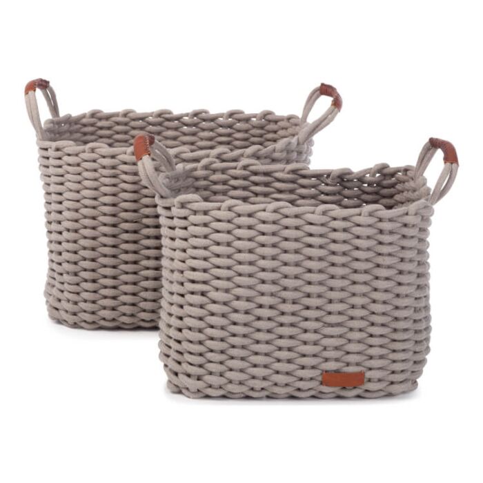 - Die Dengu-Körbe bestehen aus geflochtener Kordel mit Griffen in Lederoptik.