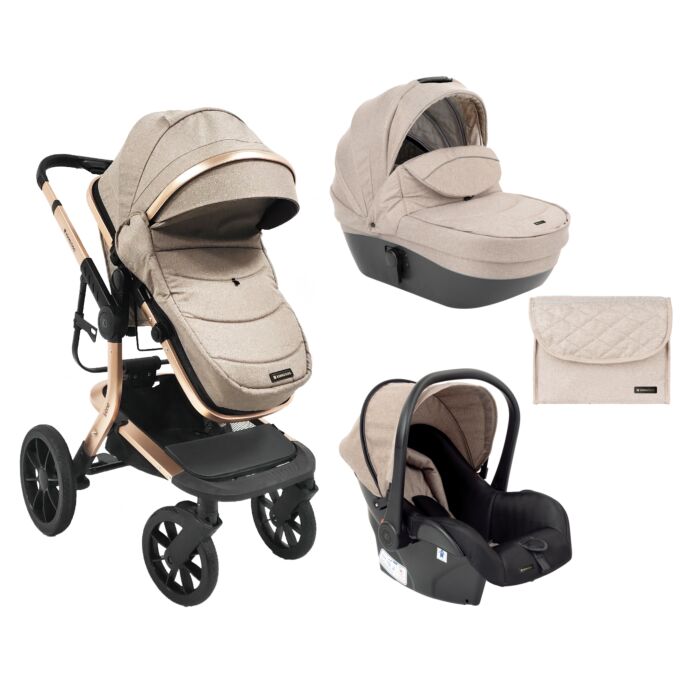 Kikkaboo Kinderwagen 3in1 mit Kunststoff-Babywanne Irene Beige 2023