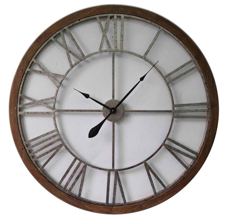 Round Wood Clock Old Metal Roman Dia 93x4cm