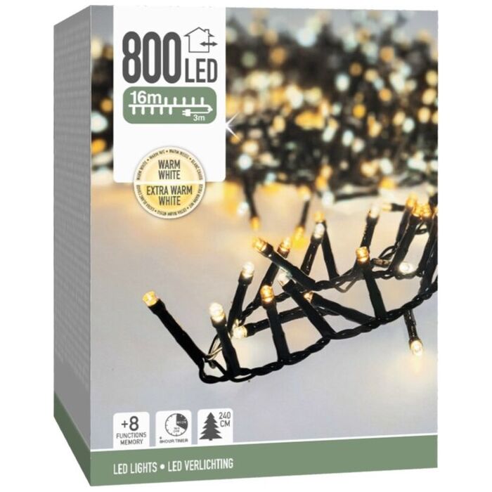 Kerstverlichting van 16 meter met 800 LED lampjes, geschikt voor een kerstboom van 240 cm, voor binnen en buiten gebruik