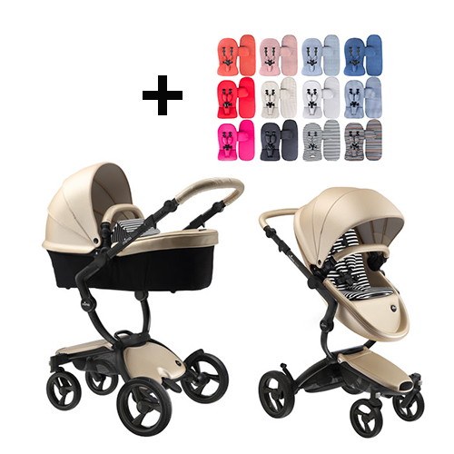 Mima Xari Kinderwagen | Gestell Schwarz | Sitz & Haube Champagner | Starter Pack Schwarz & Weiß