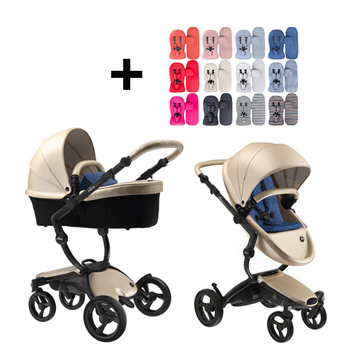 Mima Xari Kinderwagen | Gestell - Black | Sitz + Haube - Champagne | Starter Pack - Denim Blue