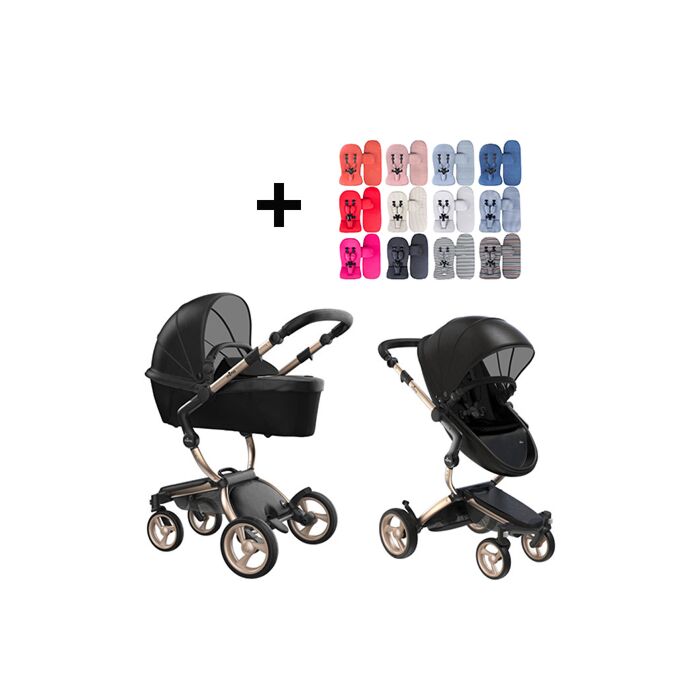 Mima Xari | Kinderwagen | Gestell Champagne, Sitz + Haube Black, Starter Pack Black