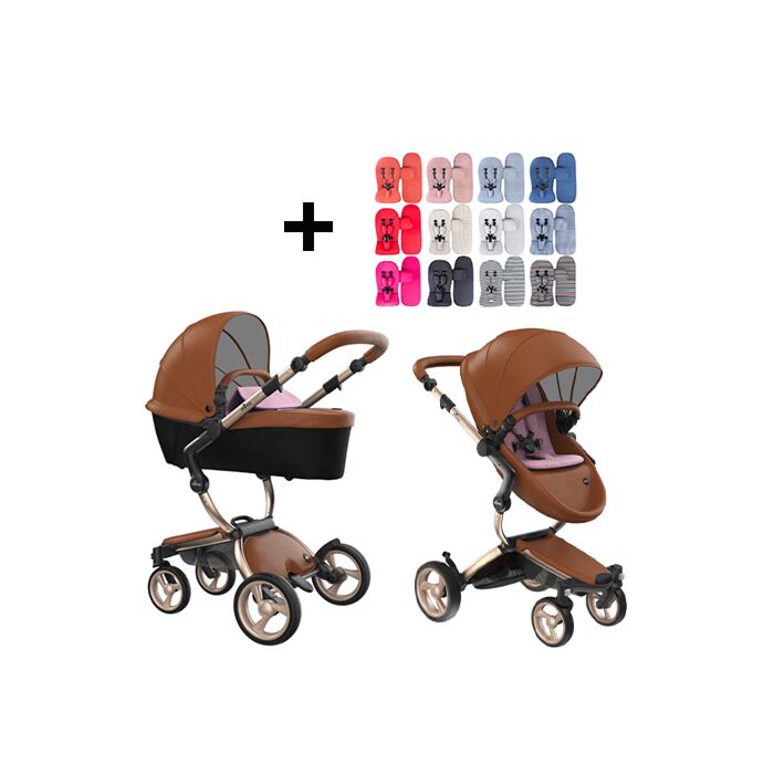 Mima Xari Kinderwagen | Gestell - Champagne | Sitz + Haube - Camel | Starter Pack - Pixel Pink