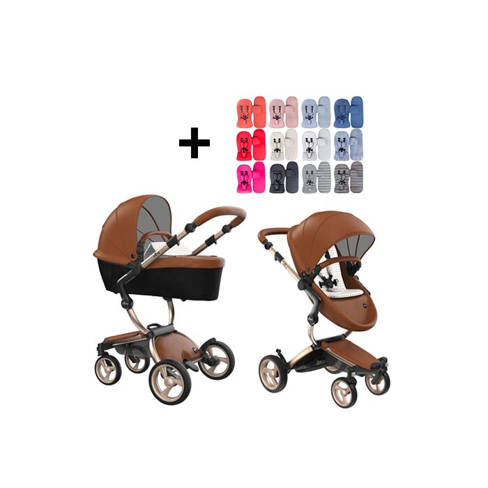 Mima Xari Kinderwagen | Gestell - Champagne | Sitz + Haube - Camel | Starter Pack - Sandy Beige