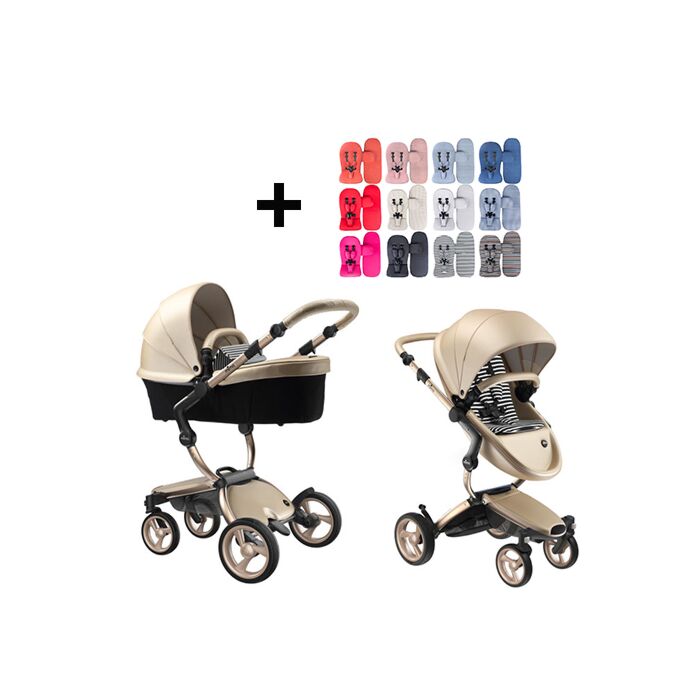 Mima Xari Kinderwagen | Gestell - Champagne | Sitz + Haube - Champagne | Starter Pack - Black & White