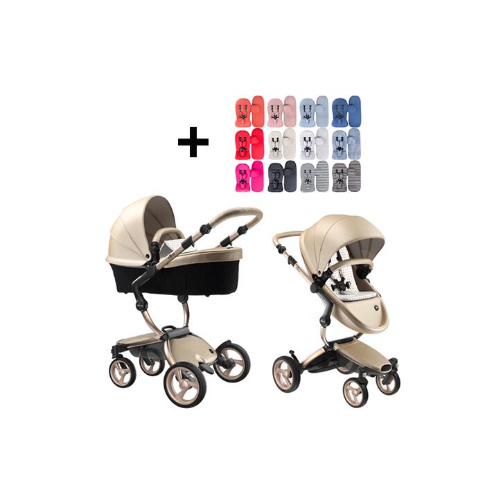 Mima Xari | Kinderwagen | Gestell Champagne, Sitz und Haube Champagne, Starter Pack Sandy Beige