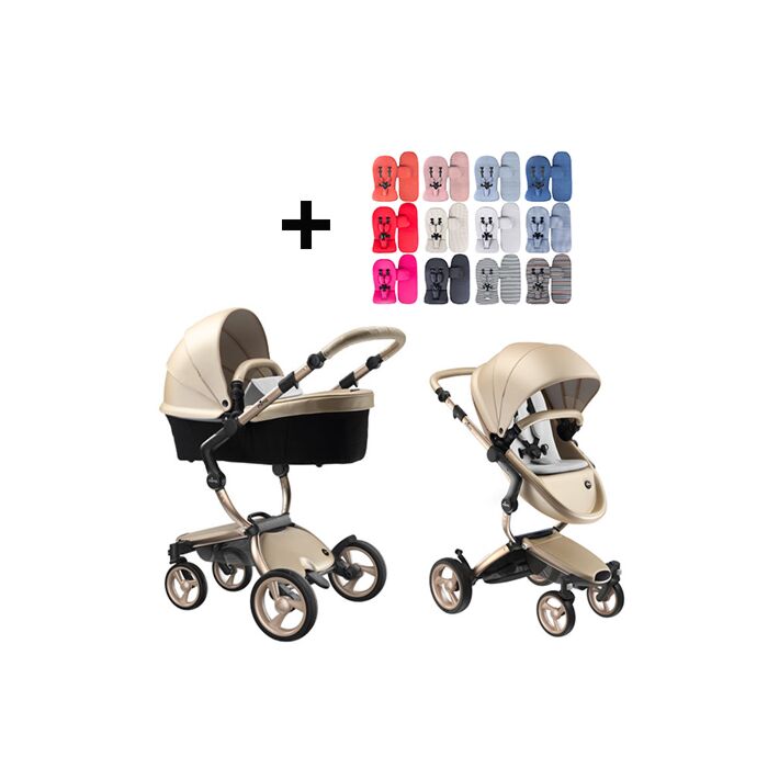 Mima Xari | Kinderwagen | Gestell - Champagne | Sitz + Haube - Champagne | Starter Pack - Stone White