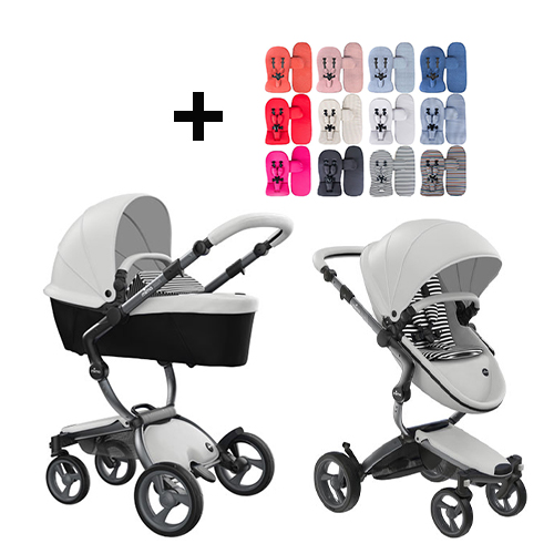 Mima Xari Kinderwagen | Gestell - Graphite Grey | Sitz + Haube - Snow White | Starter Pack - Black & White
