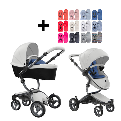 Mima Xari Kinderwagen | Gestell - Graphite Grey | Sitz + Haube - Snow White | Starter Pack - Denim Blue