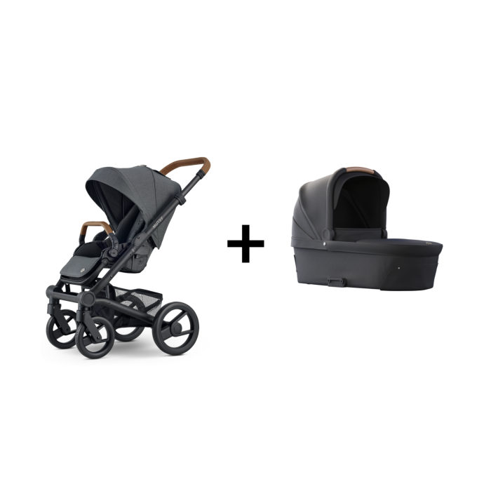 Mutsy Nio Kinderwagen + Tragetasche | Nordgrau | Schwarzer Rahmen