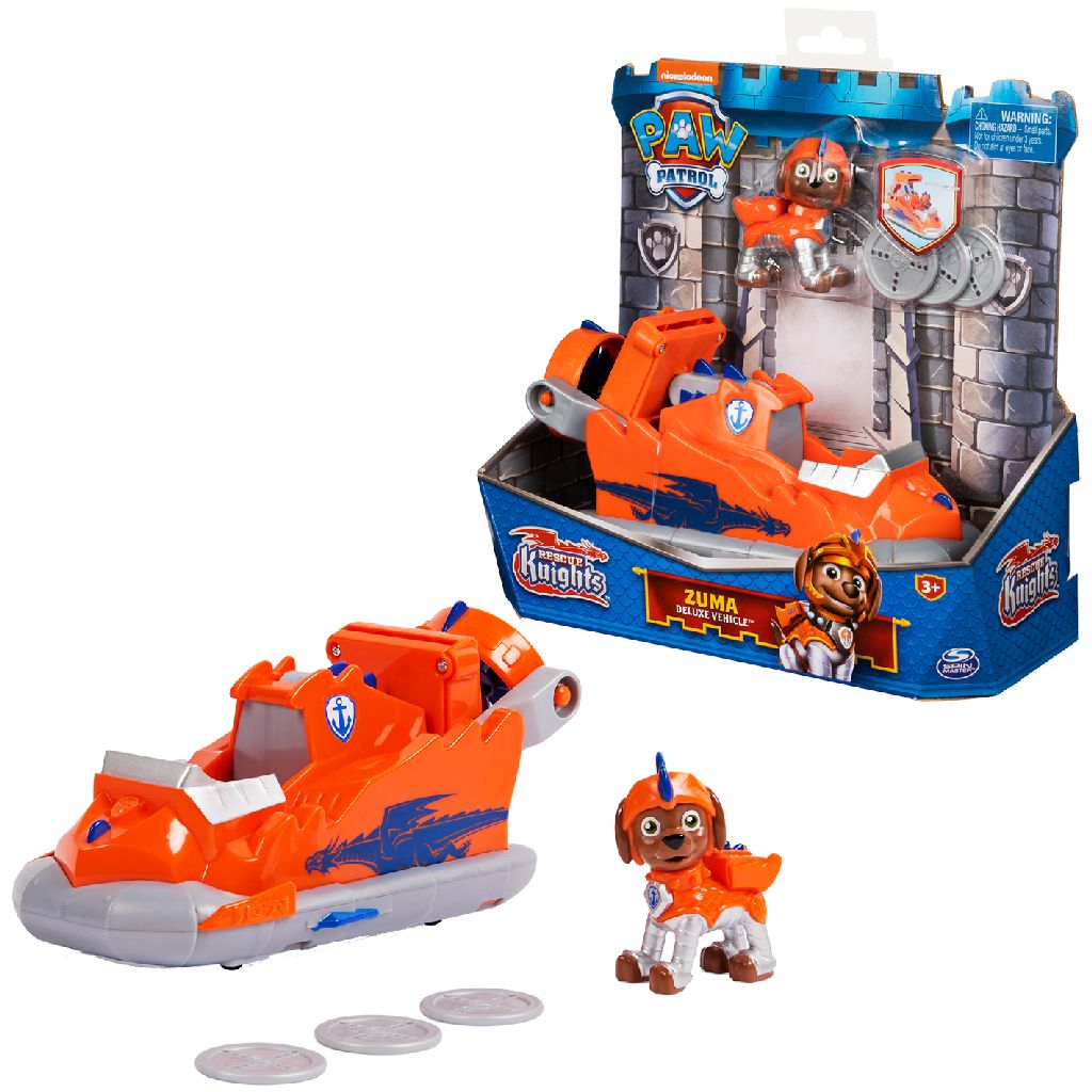 • Begleiten Sie Zuma auf spannenden Missionen mit seinem verwandelnden Paw Patrol Rescue Knights-Spielzeugfahrzeug.