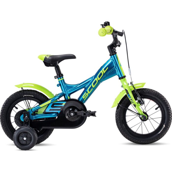 Scool | XXlite 12″ | Jungenfahrrad 3-4 Jahre | Eloxiertes Blau/Fluoreszierendes Gelb