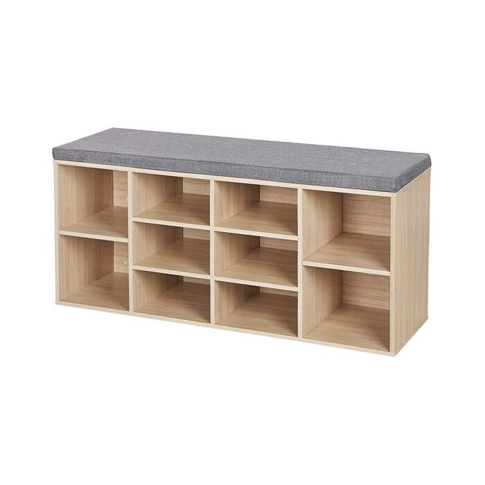 WÄHLEN SIE EINEN ORT: Verlieren Sie regelmäßig das Gleichgewicht, wenn Sie Ihre Schuhe anziehen? Setzen Sie sich bequem auf diese gepolsterte Schuhbank und binden Sie mühelos Ihre Schuhe. Die stabile Konstruktion besteht aus Spanplatten der Klasse E1 und ist mit bis zu 150 kg belastbar. Der abnehmbare Bezug aus Leinenimitat ist leicht zu reinigen