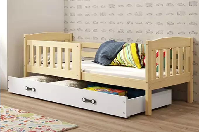Single Youth Bed KUBUŚ 90X190 with Drawer, Pine/White