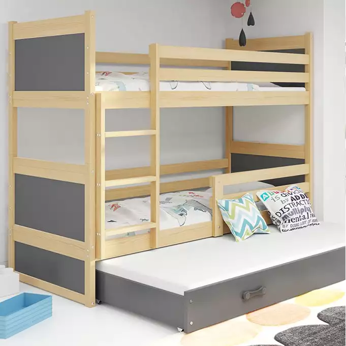 RICO Triple Youth Bed 90X190 with Mattress and Drawer, Pine/Graphite