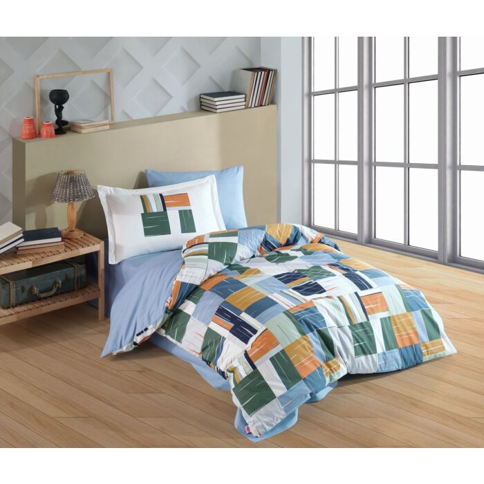 Asir Poplin Single Quilt Cover Set - Oranje Blauw