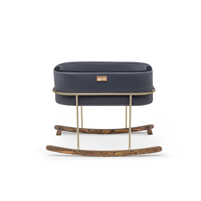 De combinatie van zwarte en gouden kleuren geeft dit wiegje een verfijnde en tijdloze uitstraling. Het strakke en moderne ontwerp past moeiteloos in elke babykamer en voegt een vleugje elegantie toe aan de ruimte. Creëer een serene en uitnodigende sfeer waarin je baby kan ontspannen en dromen.