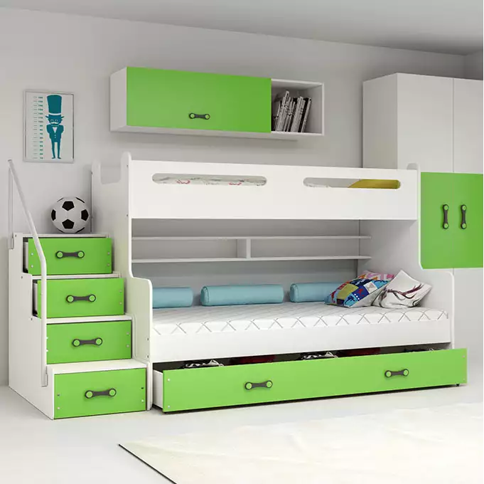 MAX 3 Youth Bunk Bed 120X200 with Mattress and Drawer, Green