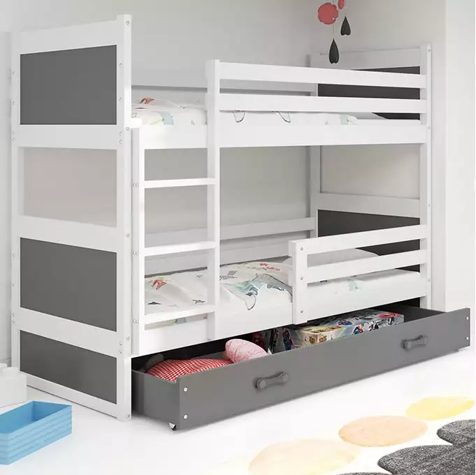 RICO Loft Bed for Teens 90x200 with Drawer, White/Graphite