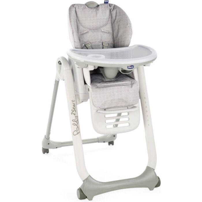 CHICCO | High Chair Polly 2 Start | Adjustable Backrest | 8 Heights | Happy Silver