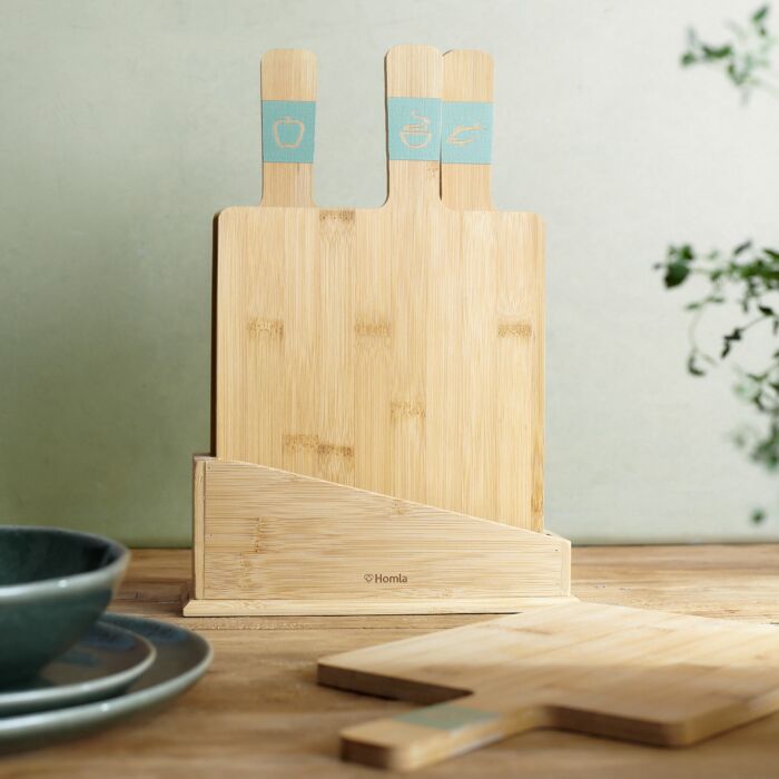 De houten planken zijn voorzien van handige markeringen die het juiste gebruik bij specifieke producten aangeven, en zijn bovendien verpakt in een standaard, waardoor ze gemakkelijker op te bergen zijn.