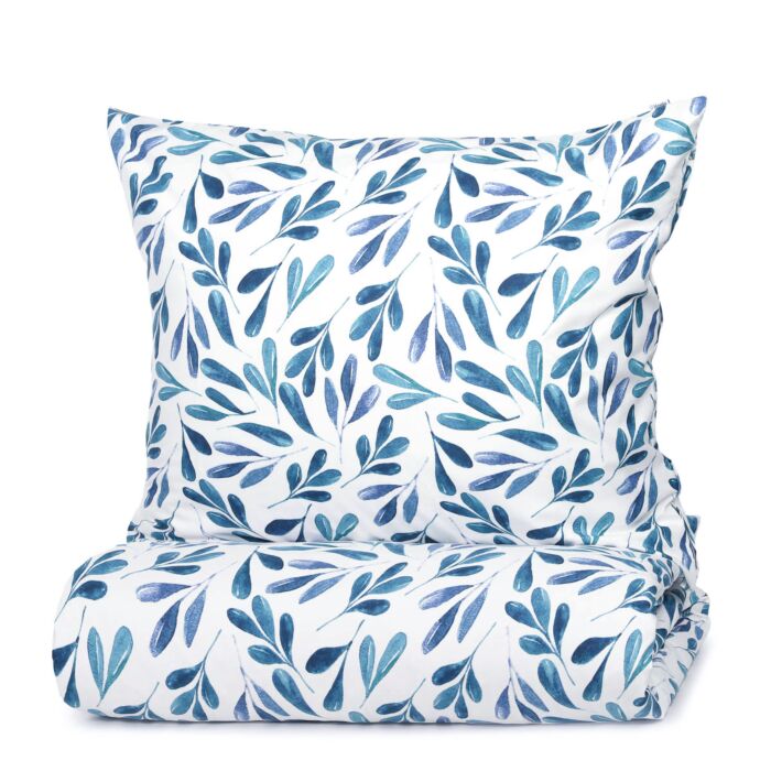 The RINTA leaf microfiber bedding set is perfect for lovers of floral patterns and color schemes in a Hamptons style. The snowy white and elegant navy blue colors create a beautiful contrast, while the delicate leaf print fits perfectly in botanical environments. The RINTA bedding is best suited for bedrooms with minimalist walls. Dimensions and Material The bright RINTA bedding measures 160x200 cm and is made of durable microfiber. The polyester fibers are resistant to damage and wear, display colors beautifully, and are allergy-friendly. Washable at a maximum of 30 degrees. Functionality and Design This RINTA bedding is suitable for fans of light and dynamic patterns, with subtle leaf motifs in contrasting blue tones. The set includes a duvet cover and two pillowcases, all with zippers. Usage and Application Due to the durable microfiber construction of the RINTA bedding, it is ideal for daily use and suitable for allergy sufferers due to its hypoallergenic properties. Features - Suitable for fans of floral patterns and Hamptons style - Contrasting colors with delicate leaf print - Microfiber construction for durability and allergy-friendliness - Includes duvet cover and pillowcases with zippers - Easy to wash at a maximum of 30 degrees - Ideal for minimalist bedrooms