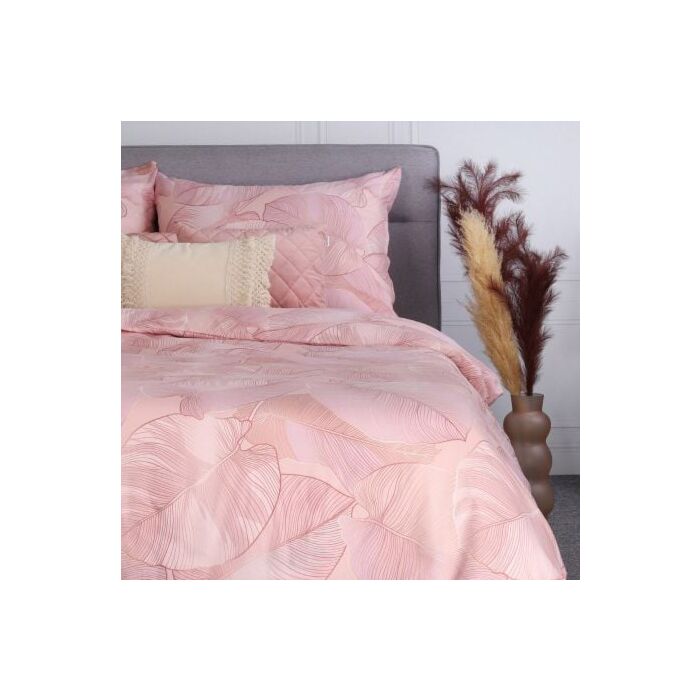 HOMLA Bedding | GALLO | microfibre pink with leaves | 140x200 cm + 1*70x80 cm | 879543