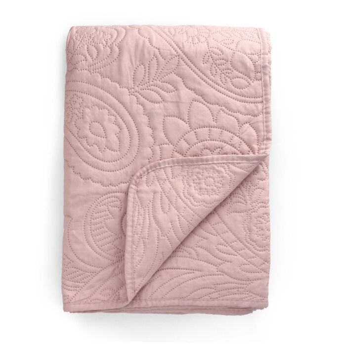 afmetingen van de sprei, die 200 cm x 220 cm zijn, zorgen ervoor dat deze op de meeste bedden past. Het materiaal van de sprei is versierd met een reli�f,bloemen- en bloemenpatroon, wat in combinatie met de roze kleur de sprei een delicatesse geeft die vaak wenselijk is bij het decoreren van dit type interieur. Het romantische karakter van de sprei past heel goed in klassieke slaapkamers in felle kleuren, waar delicate accessoires de overhand hebben.